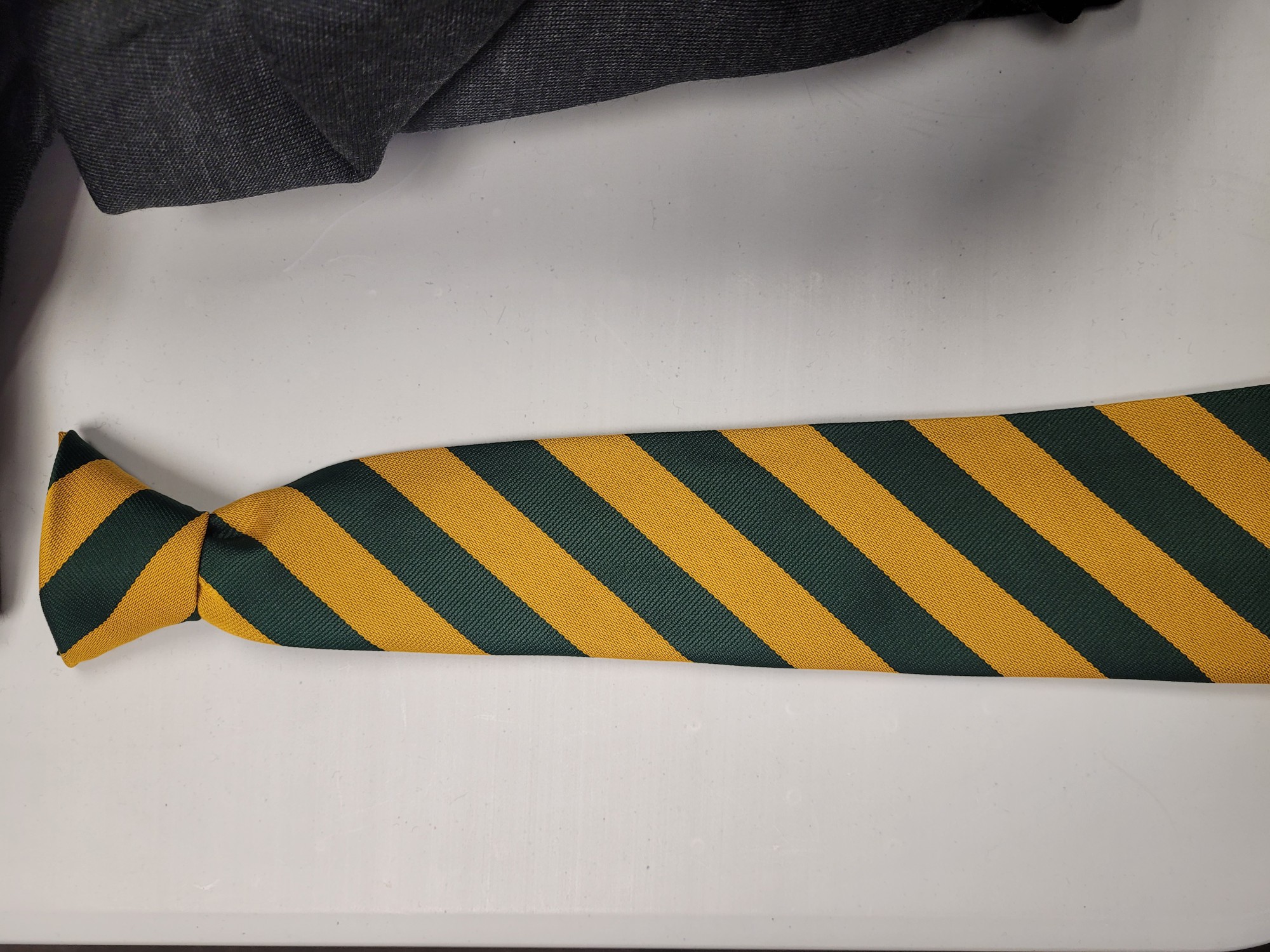 GOLD AND BOTTLE STRIPE CLIP ON TIE 14"